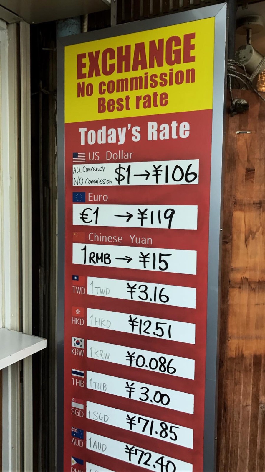 I always convert my money at my bank before traveling to a foreign country, but apparently for Tokyo, it would have been better if I didn’t. There are exchange booths on the streets that take no commission or fees, so you can easily convert your money when you are there. I even saw and used a machine that looked like an ATM where you insert your local currency and get the exchange rate in yen right then and there – no fees. Note: The smallest bill you can get is ¥1000 so you will accumulate a LOT of coins! Try to keep track of these and spend them as much as possible.